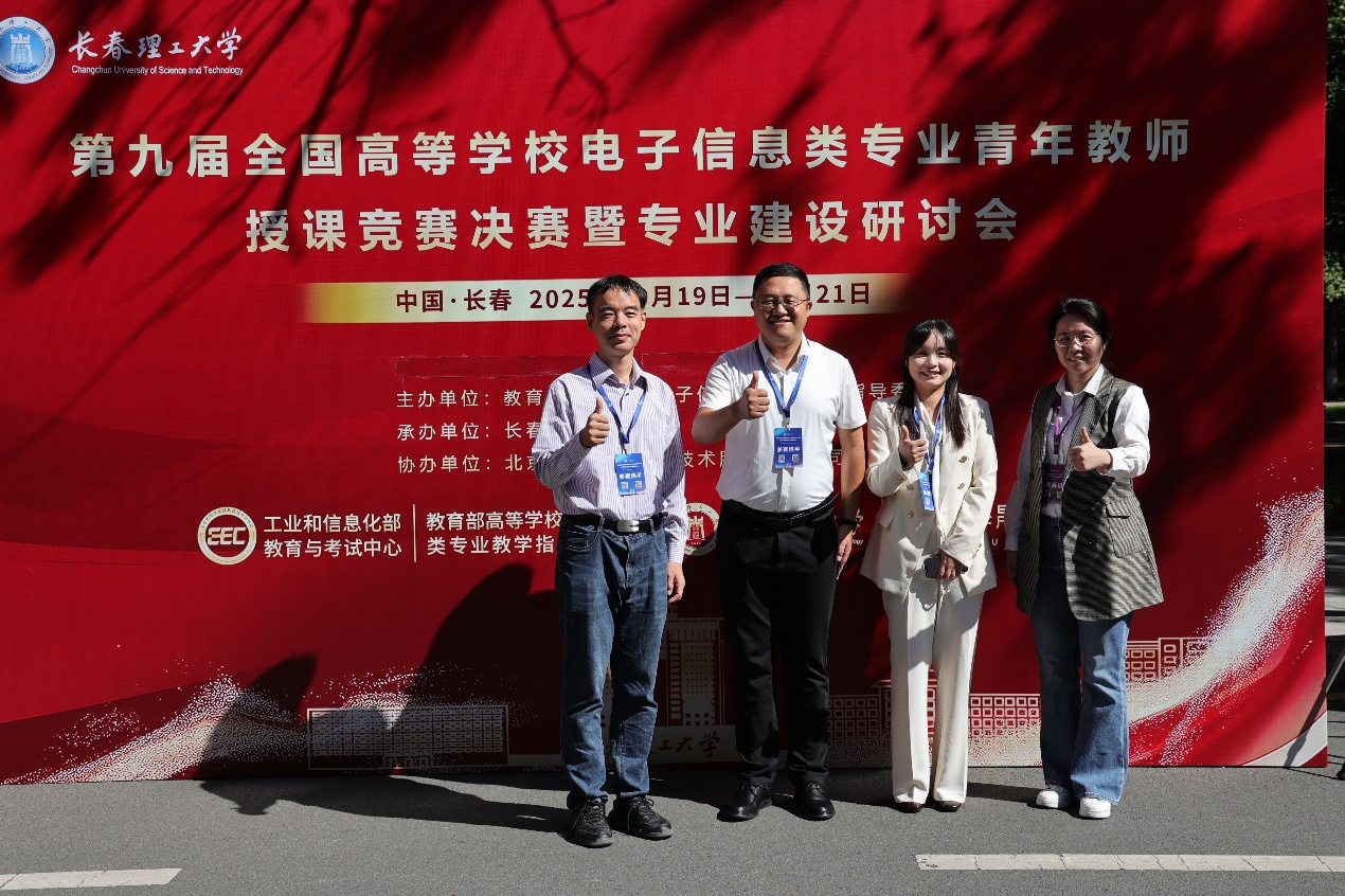 9月21日,第九屆全國高等學(xué)校電子信息類專業(yè)青年教師授課競賽決賽在長春理工大學(xué)落下帷幕,南郵電子與光學(xué)工程學(xué)院、柔性電子(未來技術(shù))學(xué)院(以下簡稱“電光柔學(xué)院”)副院長劉蕾蕾教授帶隊(duì)參賽,學(xué)院青年教師李雙德、魏嫻、陳琳均獲全國決賽二等獎。在預(yù)賽華東賽區(qū)中,李雙德、魏嫻老師獲一等獎,陳琳老師獲二等獎,徐艷卉、薛琛鵬老師獲三等獎。本屆競賽由教育部高等學(xué)校電子信息類專業(yè)教學(xué)指導(dǎo)委員會主辦、長春理工大學(xué)承辦,北京華晟經(jīng)世信息技術(shù)有限公司協(xié)辦,工業(yè)和信息化部教育考試中心指導(dǎo)。賽事分為預(yù)賽、決賽兩個階段,預(yù)賽覆蓋華東、華西、華南、華北四大賽區(qū),吸引了全國28個省、直轄市、自治區(qū)的197所高校696名教師參賽。決賽環(huán)節(jié)特邀7位國家級教學(xué)名師、44位省級教學(xué)名師及教育部高等學(xué)校相關(guān)專業(yè)教學(xué)指導(dǎo)委員會委員組成評審專家組,從現(xiàn)場教學(xué)內(nèi)容、教學(xué)組織設(shè)計(jì)、教學(xué)手段應(yīng)用、微課與教學(xué)內(nèi)容融合度、教學(xué)藝術(shù)展現(xiàn)、特色與教學(xué)效果、教案與大綱規(guī)范性等多個維度進(jìn)行綜合評審打分。經(jīng)過為期兩天的激烈比拼,最終決出“華晟經(jīng)世杯”1名(一等獎第一名)、一等獎57名、二等獎85名、三等獎131名。南郵電光柔學(xué)院高度重視教師教學(xué)能力培