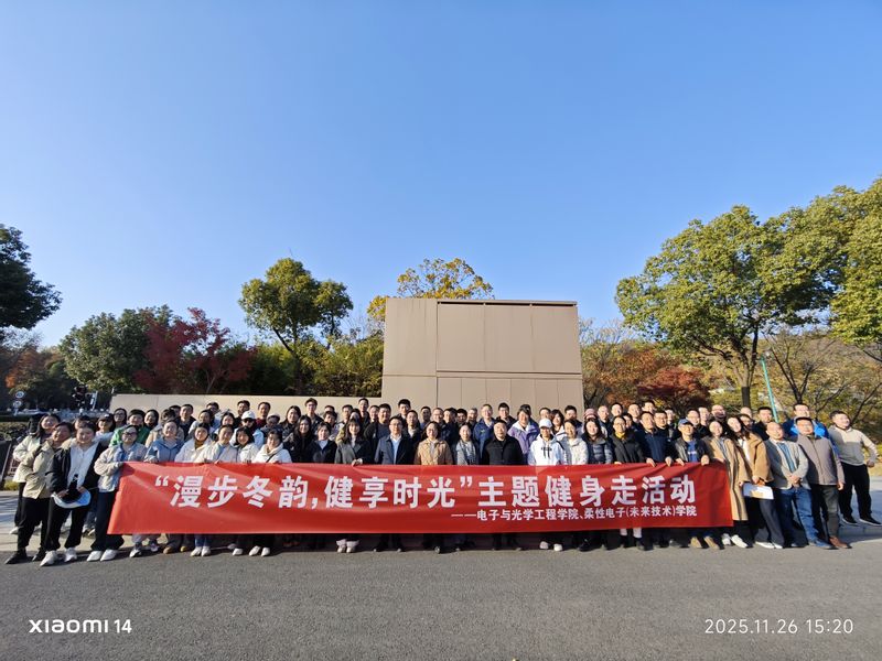 為迎接學(xué)院黨代會勝利召開,讓全體教職工在自然中放松身心、在運(yùn)動中凝聚力量,11月26日下午,電子與光學(xué)工程學(xué)院、柔性電子(未來技術(shù))學(xué)院工會精心策劃“漫步冬韻,健享時光”主題健身走活動,組織全院教師走進(jìn)羊山公園,共赴一場冬日美景與健康活力的雙向之約。下午三點(diǎn),參與活動的教師們齊聚公園入口廣場,臉上洋溢著期待與喜悅。學(xué)院黨委書記黃麗亞致辭,她表示,此次健身走活動既是響應(yīng)“全民健身”號召、關(guān)愛教職工身心健康的暖心舉措,也是學(xué)院以團(tuán)結(jié)奮進(jìn)風(fēng)貌迎接黨代會的生動實(shí)踐。“希望大家在漫步中欣賞冬景、在同行中增進(jìn)情誼,把運(yùn)動帶來的活力與激情,轉(zhuǎn)化為教書育人、干事創(chuàng)業(yè)的強(qiáng)大動力,共同為學(xué)院高質(zhì)量發(fā)展蓄力賦能。”致辭結(jié)束后,教師們邁著矯健的步伐有序啟程,沿著蜿蜒的環(huán)湖步道展開了一場與冬日的親密邂逅。活動結(jié)束后,教師們在公園入口處集體合影。此次健身走活動全程約5公里,路程雖不算長,卻讓老師們在繁忙的工作之余,走出了校園、走進(jìn)了自然,既鍛煉了身體、舒緩了壓力,更增進(jìn)了彼此間的溝通與情誼。電子與光學(xué)工程學(xué)院、柔性電子(未來技術(shù))學(xué)院工會未來將繼續(xù)聚焦教職工需求,秉持“服務(wù)教職工、凝聚向心力”的宗旨,組織更多形式