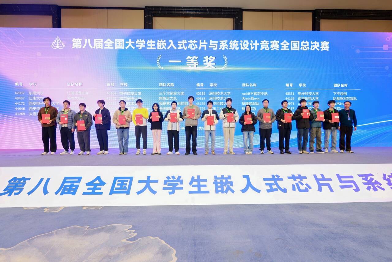 11月30日,2025年全國大學(xué)生嵌入式芯片與系統(tǒng)設(shè)計(jì)競賽-芯片設(shè)計(jì)賽道決賽與FPGA創(chuàng)新設(shè)計(jì)賽道決賽在南京落下帷幕。南京郵電大學(xué)參賽隊(duì)獲全國一等獎8項(xiàng)(芯片設(shè)計(jì)賽道1項(xiàng),F(xiàn)PGA賽道7項(xiàng)),國家一等獎數(shù)位列全國高校第二名、其中我院學(xué)生獲得國家一等獎4項(xiàng),國家二等獎4項(xiàng),國家三等獎5項(xiàng)。FPGA創(chuàng)新設(shè)計(jì)大賽是全國嵌入式芯片與系統(tǒng)設(shè)計(jì)競賽三個專項(xiàng)賽之一,全國大學(xué)生嵌入式芯片與系統(tǒng)設(shè)計(jì)競賽由中國電子教育學(xué)會主辦,旨在提高全國高校學(xué)生在嵌入式芯片及系統(tǒng)設(shè)計(jì)領(lǐng)域、可編程邏輯器件應(yīng)用領(lǐng)域自主創(chuàng)新設(shè)計(jì)與工程實(shí)踐能力,培養(yǎng)具有創(chuàng)新思維、具備解決復(fù)雜工程問題能力且擁有團(tuán)隊(duì)合作精神的優(yōu)秀人才。序號學(xué)生姓名學(xué)號獲獎等級指導(dǎo)老師1于沛田B24021509國家一等獎郝學(xué)元、黃麗亞陶宸涵B240200282曹聞達(dá)B23020525國家一等獎郝學(xué)元、諶靜李澤B230200183陳奕帆B23090625國家一等獎郝學(xué)元、崔國印季子超B240208204胡鑫媛B23020503國家一等獎謝祖帥、郝學(xué)元王譯B23021409(撰稿:郝學(xué)元 編輯:徐偉 審核:諶靜)